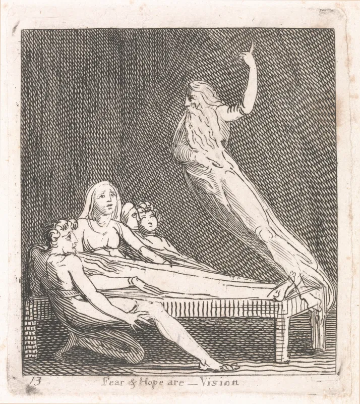 Blake later reflected on how it was that he saw the ghost. He explained that ghosts appear as an invasion from the beyond, when an unsuspecting victim is not ready for them. They are uncanny: disturbing because disturbed; shocking because out of joint.